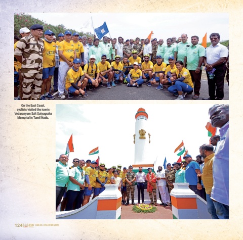 124 125On the East Coast, cyclists visited the iconic Vedaranyam Salt Satyagraha Memorial in Tamil Nadu.