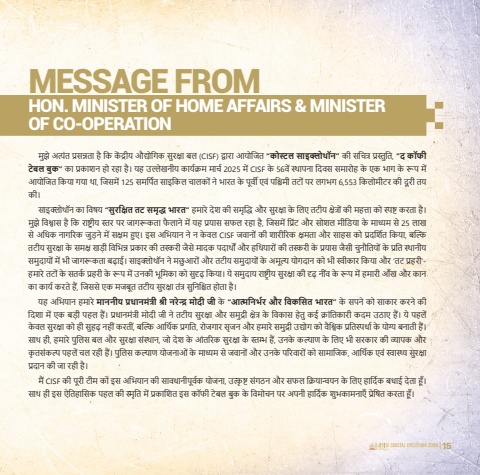 14 15%u092e%u0941%u091d%u0947 %u0905%u0924%u094d%u092f%u0902%u0924 %u092a%u094d%u0930%u0938%u0928%u094d%u0928%u0924%u093e %u0939%u0948 %u0915%u093f %u0915%u0947%u0902 %u0926%u094d%u0930%u0940%u092f %u0914%u0926%u094d%u092f%u094b%u0917%u093f%u0915 %u0938%u0941%u0930%u0915%u094d%u0937%u093e %u092c%u0932 (CISF) %u0926%u094d%u0935%u093e%u0930%u093e %u0906%u092f%u094b%u091c%u093f%u0924 %u201c%u0915%u094b%u0938%u094d%u091f%u0932 %u0938%u093e%u0907%u0915%u094d%u0932%u094b%u0925%u0949%u0928%u201d %u0915%u0940 %u0938%u091a%u093f%u0924%u094d%u0930 %u092a%u094d%u0930%u0938%u094d%u0924%u0941%u0924%u093f, %u201c%u0926 %u0915%u0949%u092b%u0940 %u091f%u0947%u092c%u0932 %u092c%u0941%u0915%u201d %u0915%u093e %u092a%u094d%u0930%u0915%u093e%u0936%u0928 %u0939%u094b %u0930%u0939%u093e %u0939%u0948%u0964 %u092f%u0939 %u0909%u0932%u094d%u0932%u0947%u0916%u0928%u0940%u092f %u0915%u093e%u0930%u094d%u092f%u0915%u094d%u0930%u092e %u092e%u093e%u0930%u094d%u091a 2025 %u092e%u0947%u0902 CISF %u0915%u0947 56%u0935%u0947%u0902 %u0938%u094d%u0925%u093e%u092a%u0928%u093e %u0926%u093f%u0935%u0938 %u0938%u092e%u093e%u0930%u094b%u0939 %u0915%u0947 %u090f%u0915 %u092d%u093e%u0917 %u0915%u0947 %u0930%u0942%u092a %u092e%u0947%u0902 %u0906%u092f%u094b%u091c%u093f%u0924 %u0915%u093f%u092f%u093e %u0917%u092f%u093e %u0925%u093e, %u091c%u093f%u0938%u092e%u0947%u0902 125 %u0938%u092e%u0930%u094d%u092a%u093f%u0924 %u0938%u093e%u0907%u0915%u093f%u0932 %u091a%u093e%u0932%u0915%u094b%u0902 %u0928%u0947 %u092d%u093e%u0930%u0924 %u0915%u0947 %u092a%u0942%u0930%u094d%u0935%u0940 %u090f%u0935%u0902 %u092a%u0936%u094d%u091a%u093f%u092e%u0940 %u0924%u091f%u094b%u0902 %u092a%u0930 %u0932%u0917%u092d%u0917 6,553 %u0915%u093f%u0932%u094b%u092e%u0940%u091f%u0930 %u0915%u0940 %u0926%u0942 %u0930%u0940 %u0924%u092f %u0915%u0940%u0964%u0938%u093e%u0907%u0915%u094d%u0932%u094b%u0925%u0949%u0928 %u0915%u093e %u0935%u093f%u0937%u092f %u201c%u0938%u0941%u0930%u0915%u094d%u0937%u093f%u0924 %u0924%u091f %u0938%u092e%u0943%u0926%u094d%u0927 %u092d%u093e%u0930%u0924%u201d %u0939%u092e%u093e%u0930%u0947 %u0926%u0947%u0936 %u0915%u0940 %u0938%u092e%u0943%u0926%u094d%u0927%u093f %u0914%u0930 %u0938%u0941%u0930%u0915%u094d%u0937%u093e %u0915%u0947 %u0932%u093f%u090f %u0924%u091f%u0940%u092f %u0915%u094d%u0937%u0947%u0924%u094d%u0930%u094b%u0902 %u0915%u0940 %u092e%u0939%u0924%u094d%u0924%u093e %u0915%u094b %u0938%u094d%u092a%u0937%u094d%u091f %u0915%u0930%u0924%u093e %u0939%u0948%u0964 %u092e%u0941%u091d%u0947 %u0935%u093f%u0936%u094d%u0935%u093e%u0938 %u0939%u0948 %u0915%u093f %u0930%u093e%u0937%u094d%u091f%u094d%u0930%u0940%u092f %u0938%u094d%u0924%u0930 %u092a%u0930 %u091c%u093e%u0917%u0930%u0942%u0915%u0924%u093e %u092b%u0948 %u0932%u093e%u0928%u0947 %u092e%u0947%u0902 %u092f%u0939 %u092a%u094d%u0930%u092f%u093e%u0938 %u0938%u092b%u0932 %u0930%u0939%u093e %u0939%u0948, %u091c%u093f%u0938%u092e%u0947%u0902 %u092a%u094d%u0930%u093f%u0902%u091f %u0914%u0930 %u0938%u094b%u0936%u0932 %u092e%u0940%u0921%u093f%u092f%u093e %u0915%u0947 %u092e%u093e%u0927%u094d%u092f%u092e %u0938%u0947 25 %u0932%u093e%u0916 %u0938%u0947 %u0905%u0927%u093f%u0915 %u0928%u093e%u0917%u0930%u093f%u0915 %u091c%u0941%u0921%u093c%u0928%u0947 %u092e%u0947%u0902 %u0938%u0915%u094d%u0937%u092e %u0939%u0941%u090f%u0964 %u0907%u0938 %u0905%u092d%u093f%u092f%u093e%u0928 %u0928%u0947 %u0928 %u0915%u0947 %u0935%u0932 CISF %u091c%u0935%u093e%u0928%u094b%u0902 %u0915%u0940 %u0936%u093e%u0930%u0940%u0930%u093f%u0915 %u0915%u094d%u0937%u092e%u0924%u093e %u0914%u0930 %u0938%u093e%u0939%u0938 %u0915%u094b %u092a%u094d%u0930%u0926%u0930%u094d%u0936%u093f%u0924 %u0915%u093f%u092f%u093e, %u092c%u0932%u094d%u0915%u093f %u0924%u091f%u0940%u092f %u0938%u0941%u0930%u0915%u094d%u0937%u093e %u0915%u0947 %u0938%u092e%u0915%u094d%u0937 %u0916%u0921%u093c%u0940 %u0935%u093f%u092d%u093f%u0928%u094d%u0928 %u092a%u094d%u0930%u0915%u093e%u0930 %u0915%u0940 %u0924%u0938%u094d%u0915%u0930%u0940 %u091c%u0948%u0938%u0947 %u092e%u093e%u0926%u0915 %u092a%u0926%u093e%u0930%u094d%u0925%u094b%u0902 %u0914%u0930 %u0939%u0925%u093f%u092f%u093e%u0930%u094b%u0902 %u0915%u0940 %u0924%u0938%u094d%u0915%u0930%u0940 %u0915%u0947 %u092a%u094d%u0930%u092f%u093e%u0938 %u091c%u0948%u0938%u0940 %u091a%u0941%u0928%u094c%u0924%u093f%u092f%u094b%u0902 %u0915%u0947 %u092a%u094d%u0930%u0924%u093f %u0938%u094d%u0925%u093e%u0928%u0940%u092f %u0938%u092e%u0941%u0926%u093e%u092f%u094b%u0902 %u092e%u0947%u0902 %u092d%u0940 %u091c%u093e%u0917%u0930%u0942%u0915%u0924%u093e %u092c%u0922%u093c%u093e%u0908%u0964 %u0938%u093e%u0907%u0915%u094d%u0932%u094b%u0925%u0949%u0928 %u0928%u0947 %u092e%u091b%u0941 %u0906%u0930%u094b%u0902 %u0914%u0930 %u0924%u091f%u0940%u092f %u0938%u092e%u0941%u0926%u093e%u092f%u094b%u0902 %u0915%u0947 %u0905%u092e%u0942%u0932%u094d%u092f %u092f%u094b%u0917%u0926%u093e%u0928 %u0915%u094b %u092d%u0940 %u0938%u094d%u0935%u0940%u0915%u093e%u0930 %u0915%u093f%u092f%u093e %u0914%u0930 %u2018%u0924%u091f %u092a%u094d%u0930%u0939%u0930%u0940%u2019- %u0939%u092e%u093e%u0930%u0947 %u0924%u091f%u094b%u0902 %u0915%u0947 %u0938%u0924%u0930%u094d%u0915 %u092a%u094d%u0930%u0939%u0930%u0940 %u0915%u0947 %u0930%u0942%u092a %u092e%u0947%u0902 %u0909%u0928%u0915%u0940 %u092d%u0942%u092e%u093f%u0915%u093e %u0915%u094b %u0938%u0941%u0926%u0943%u0922%u093c %u0915%u093f%u092f%u093e%u0964 %u092f%u0947 %u0938%u092e%u0941%u0926%u093e%u092f %u0930%u093e%u0937%u094d%u091f%u094d%u0930%u0940%u092f %u0938%u0941%u0930%u0915%u094d%u0937%u093e %u0915%u0940 %u0926%u0943%u0922%u093c %u0928%u0940%u0902%u0935 %u0915%u0947 %u0930%u0942%u092a %u092e%u0947%u0902 %u0939%u092e%u093e%u0930%u0940 %u0906%u0901%u0916 %u0914%u0930 %u0915%u093e%u0928 %u0915%u093e %u0915%u093e%u0930%u094d%u092f %u0915%u0930%u0924%u0947 %u0939%u0948%u0902, %u091c%u093f%u0938%u0938%u0947 %u090f%u0915 %u092e%u091c%u092c%u0942%u0924 %u0924%u091f%u0940%u092f %u0938%u0941%u0930%u0915%u094d%u0937%u093e %u0924%u0902%u0924%u094d%u0930 %u0938%u0941%u0928%u093f%u0936%u094d%u091a%u093f%u0924 %u0939%u094b%u09