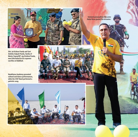36 37Eminent personalities like actor Rahul Bose graced the occasion.Namkhana Academy presented cultural and dance performances, while the CISF Band performed a patriotic song.Shri Jai Kishan Panda and Smt Ambika Satpati Panda, family of Martyr Sepoy/MT Jay Krishna Panda, were felicitated for his supreme sacrifice at Bakkhali.