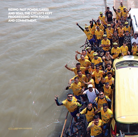 42 43Riding past ponds, lakes and seas, the cyclists kept progressing with focus and commitment.42