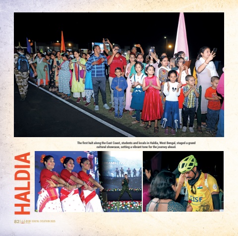 82 83 HALDIAThe first halt along the East Coast, students and locals in Haldia, West Bengal, staged a grandcultural showcase, setting a vibrant tone for the journey ahead.