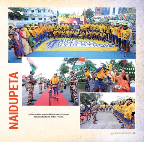 88 89 NAIDUPETA Cyclists received a memorable welcome at Vasamma Ashram in Naidupeta, Andhra Pradesh.